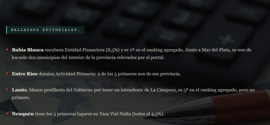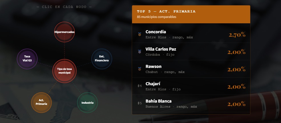 Los datos reflejan que Concordia no solo aparece en ambos rankings, sino que lo hace con niveles elevados en comparación con otros municipios del país, lo que evidencia una fuerte incidencia de las tasas locales sobre la actividad económica.