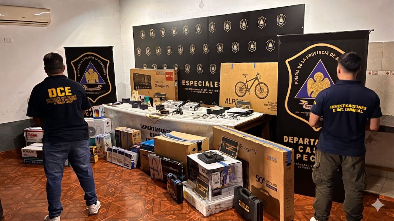 Asimismo, los efectivos procedieron al secuestro de más de 30 electrodomésticos nuevos, aún embalados en sus cajas, que habrían sido adquiridos con posterioridad al ilícito. En una de las viviendas también se hallaron dos armas de fuego tipo revólver, calibres .32 y .38.