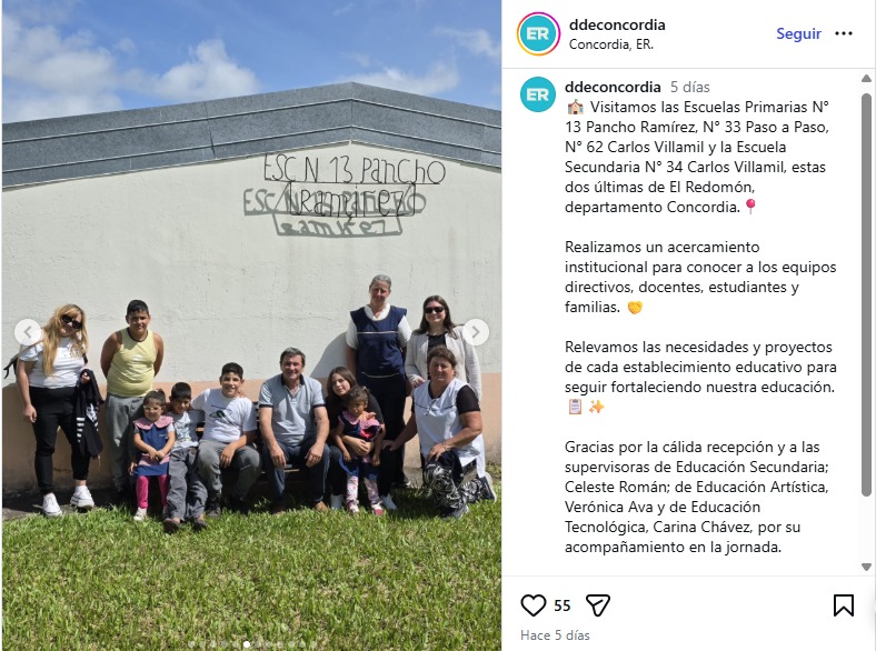 La salida del funcionario genera sorpresa en el ámbito educativo local, teniendo en cuenta que hasta el inicio de esta semana continuaba desarrollando su agenda institucional con normalidad. De hecho, hace apenas cinco días las redes sociales oficiales de la Departamental de Escuelas publicaban imágenes de recorridas realizadas por Ferrari en tres instituciones educativas del departamento Concordia.